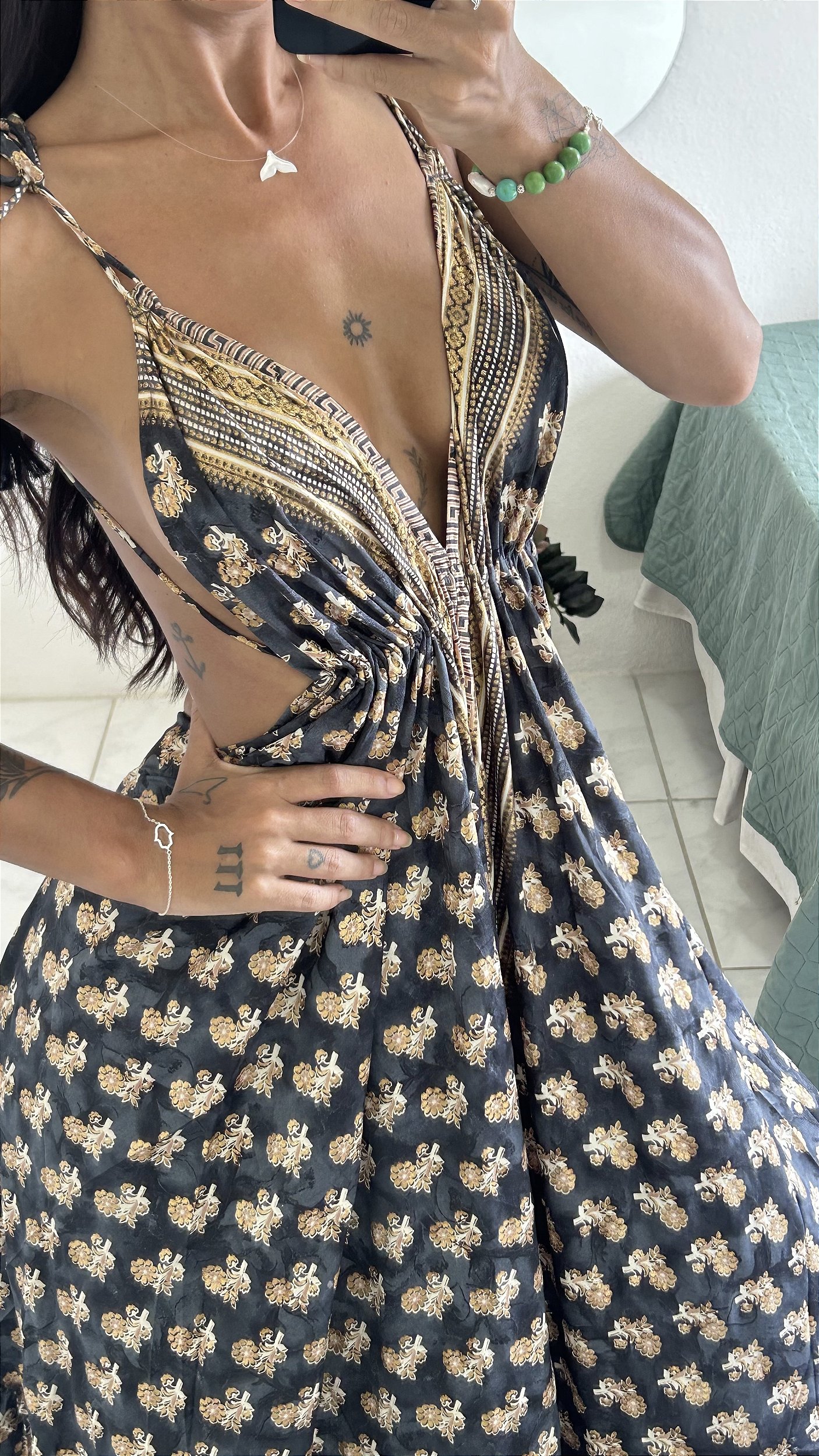 Leve, fluido e super versátil, esse vestido é perfeito para quem ama estilo com conforto. Confeccionado em seda indiana, ele se adapta ao seu corpo com diferentes formas de amarração, valorizando a silhueta do seu jeito.